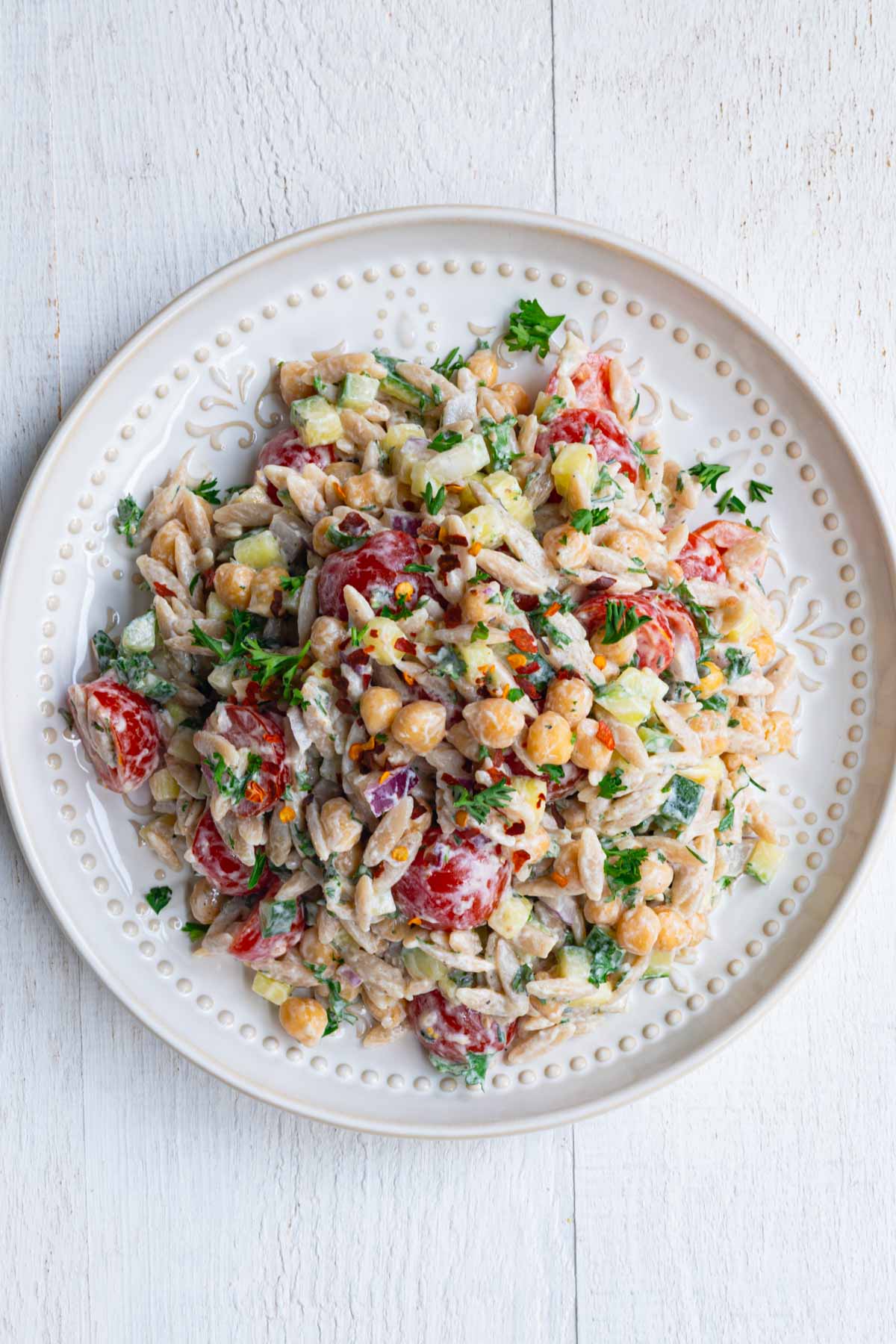- If preparing ahead, you can cook the orzo and chop the vegetables a day in advance and store them separately. Toss everything with the dressing shortly before serving for the freshest texture.